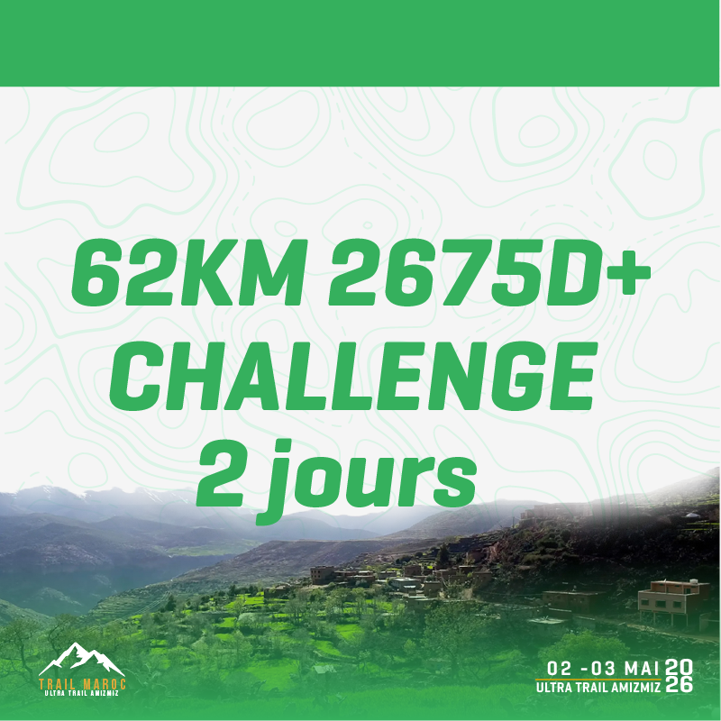 Trail 105km in the heart of the valleys of amizmiz which is aimed at seasoned runners, also proposed in duo relay formula. Drawn all around the Atlas Chain, this race offers an unprecedented discovery of this exceptional territory thanks to a rather balanced layout and the ascent of several summits.