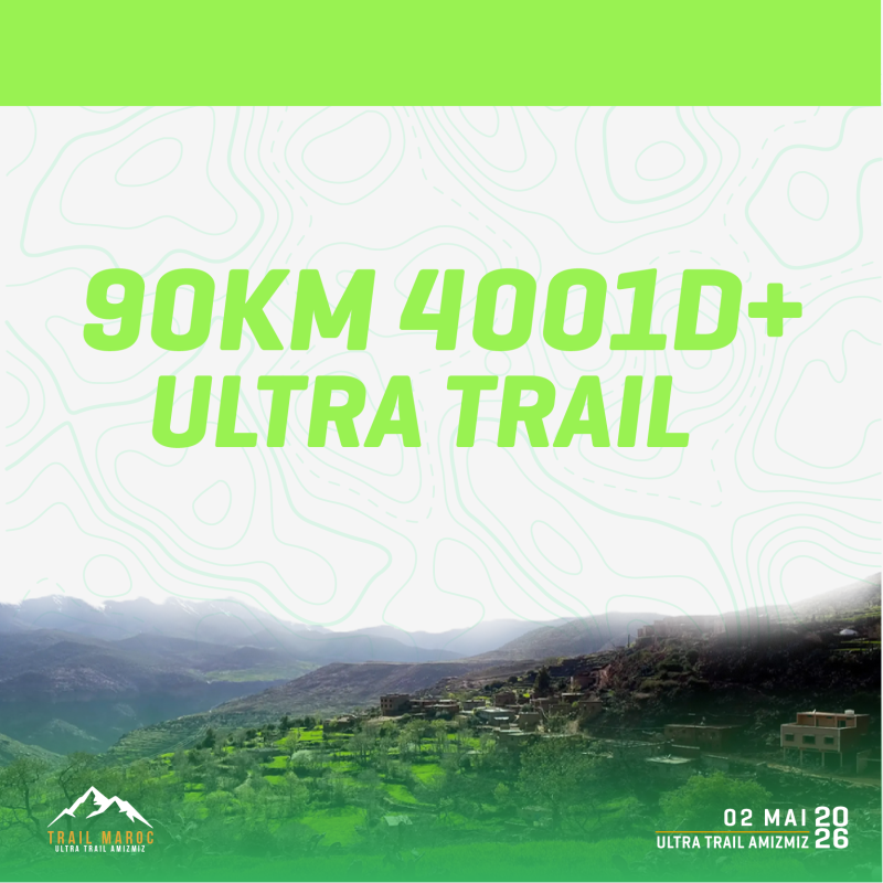 Participez au Trail Amizmiz 2026 dans le Haut Atlas près de Marrakech – distances 90km avec 4001D. Inscrivez-vous dès maintenant à ce trail unique au Maroc !